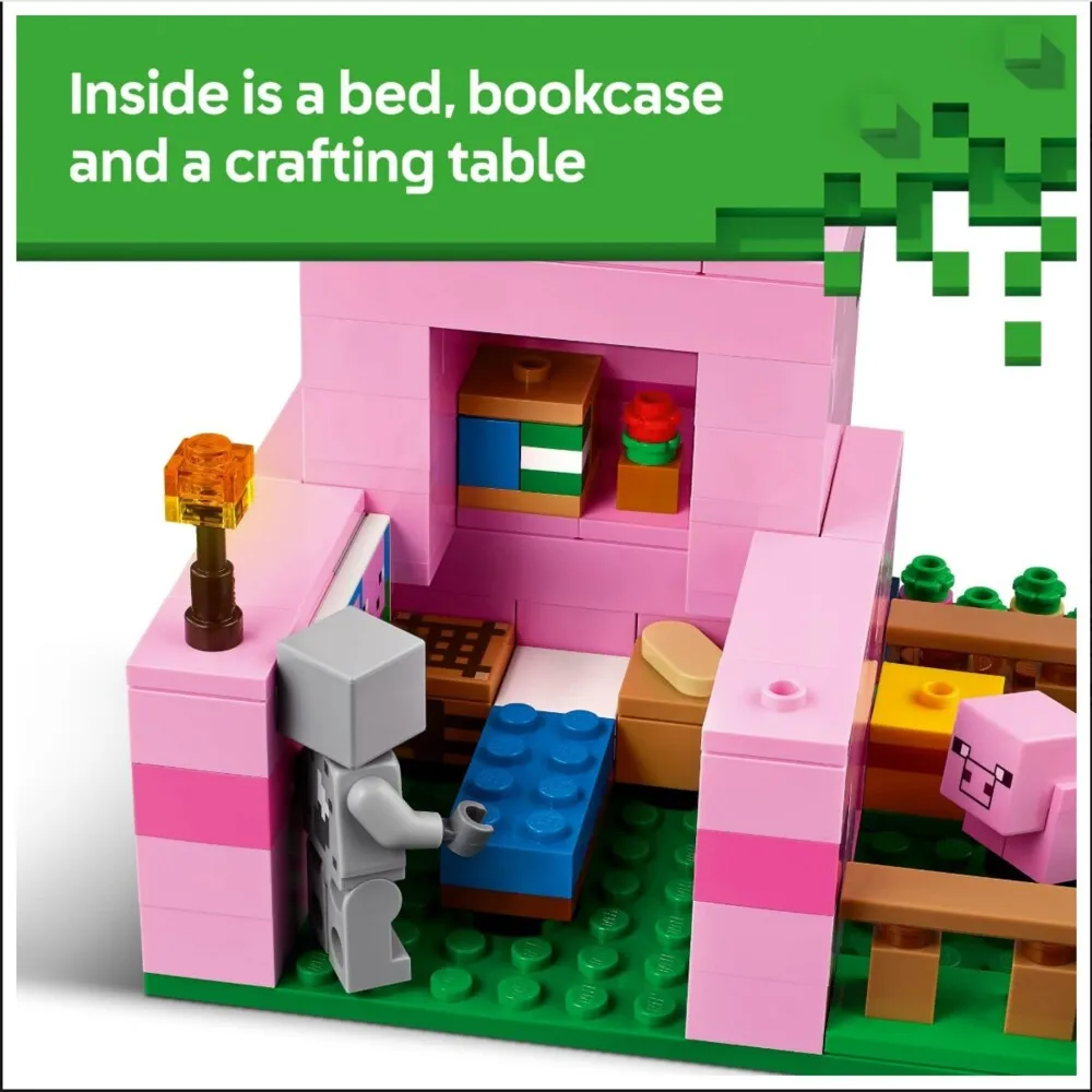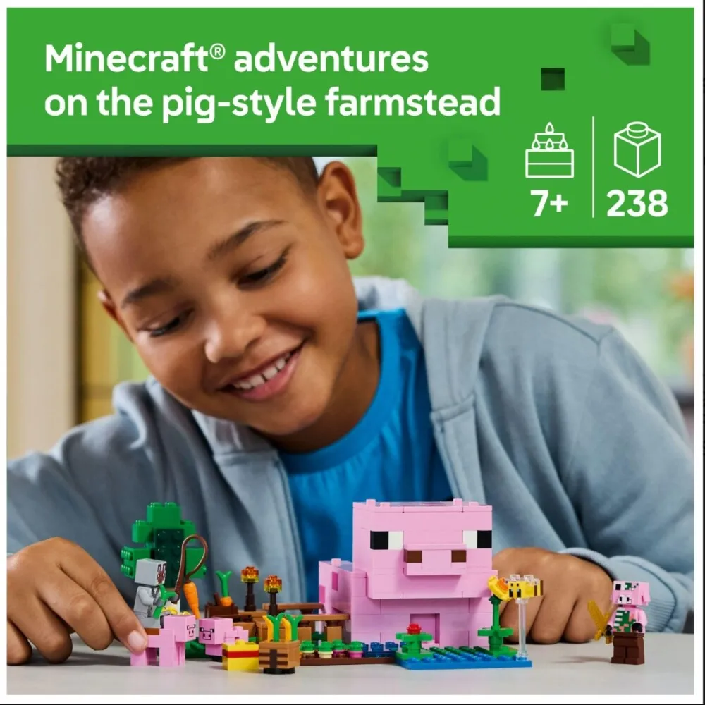- LEGO MINECRAFT TOY WITH ANIMALS – The Baby Pig House is packed with pretend play fun for girls and boys ages 7 years old and up who have a passion for Minecraft, home-building, animals and farms